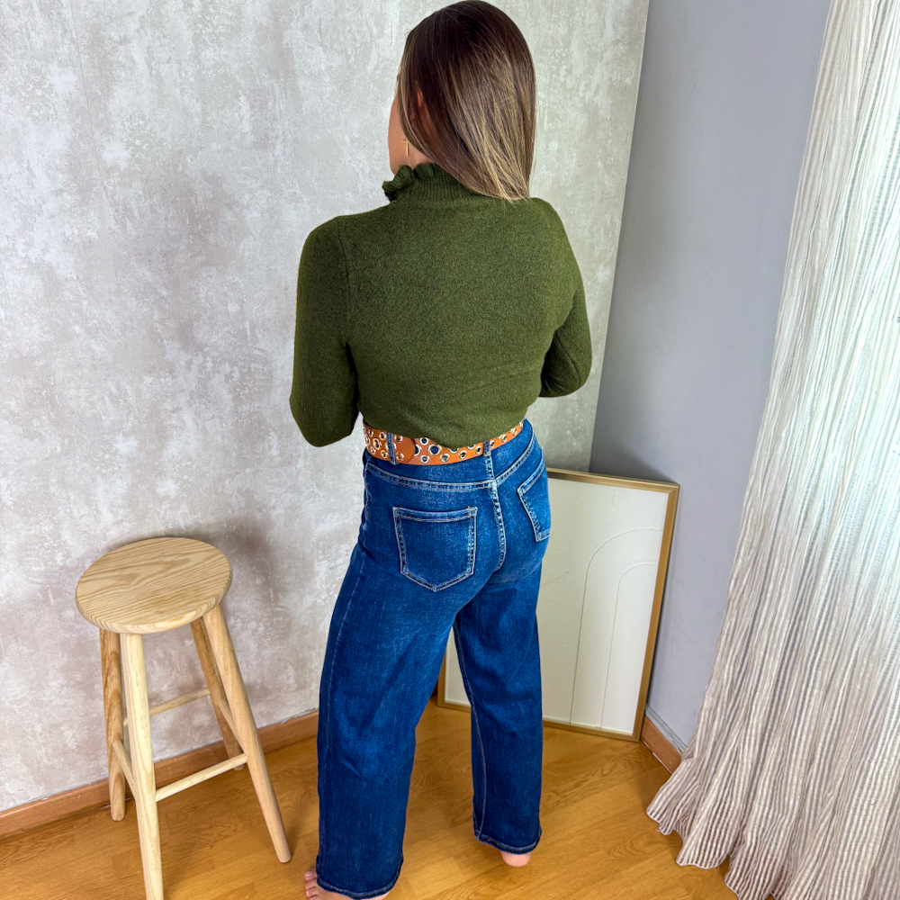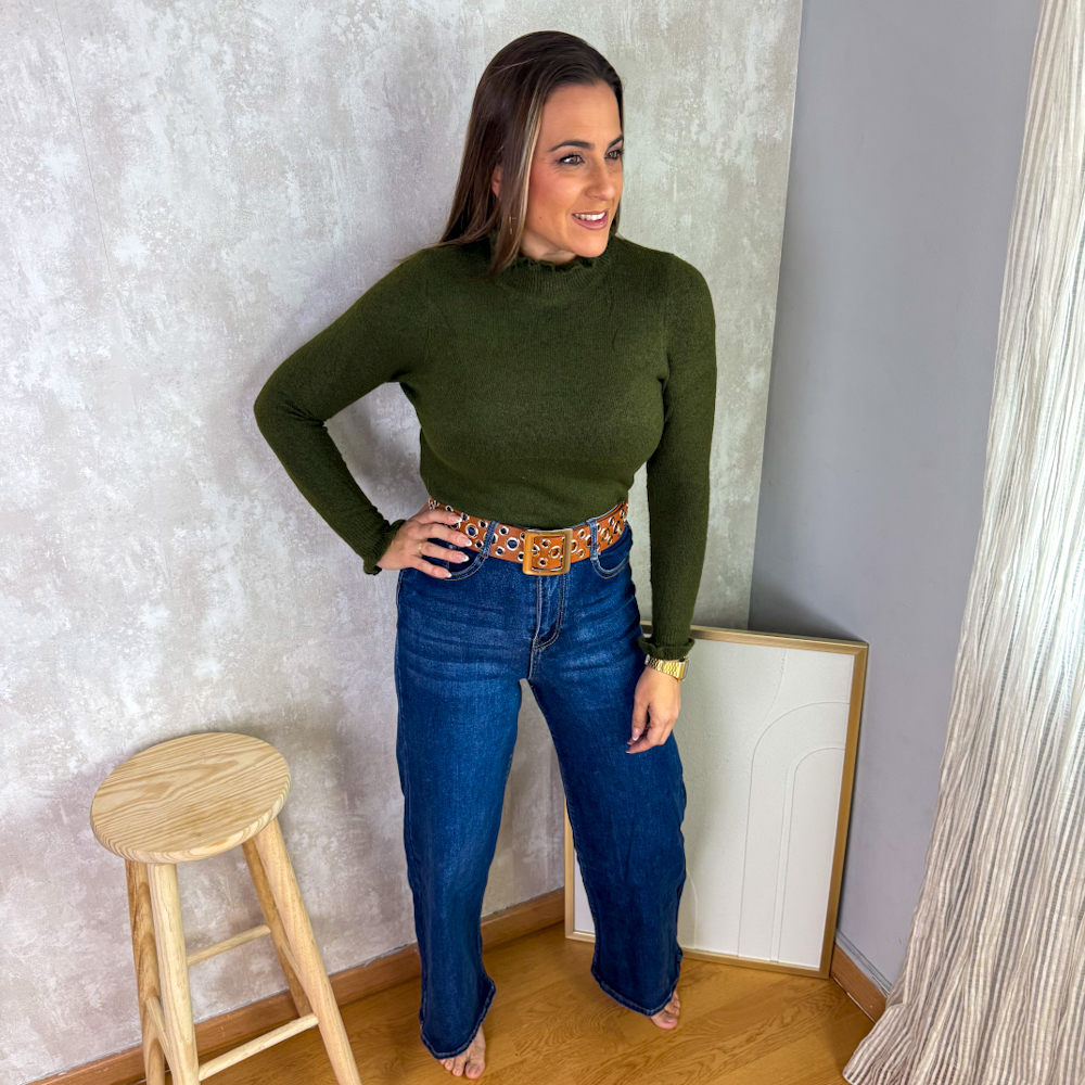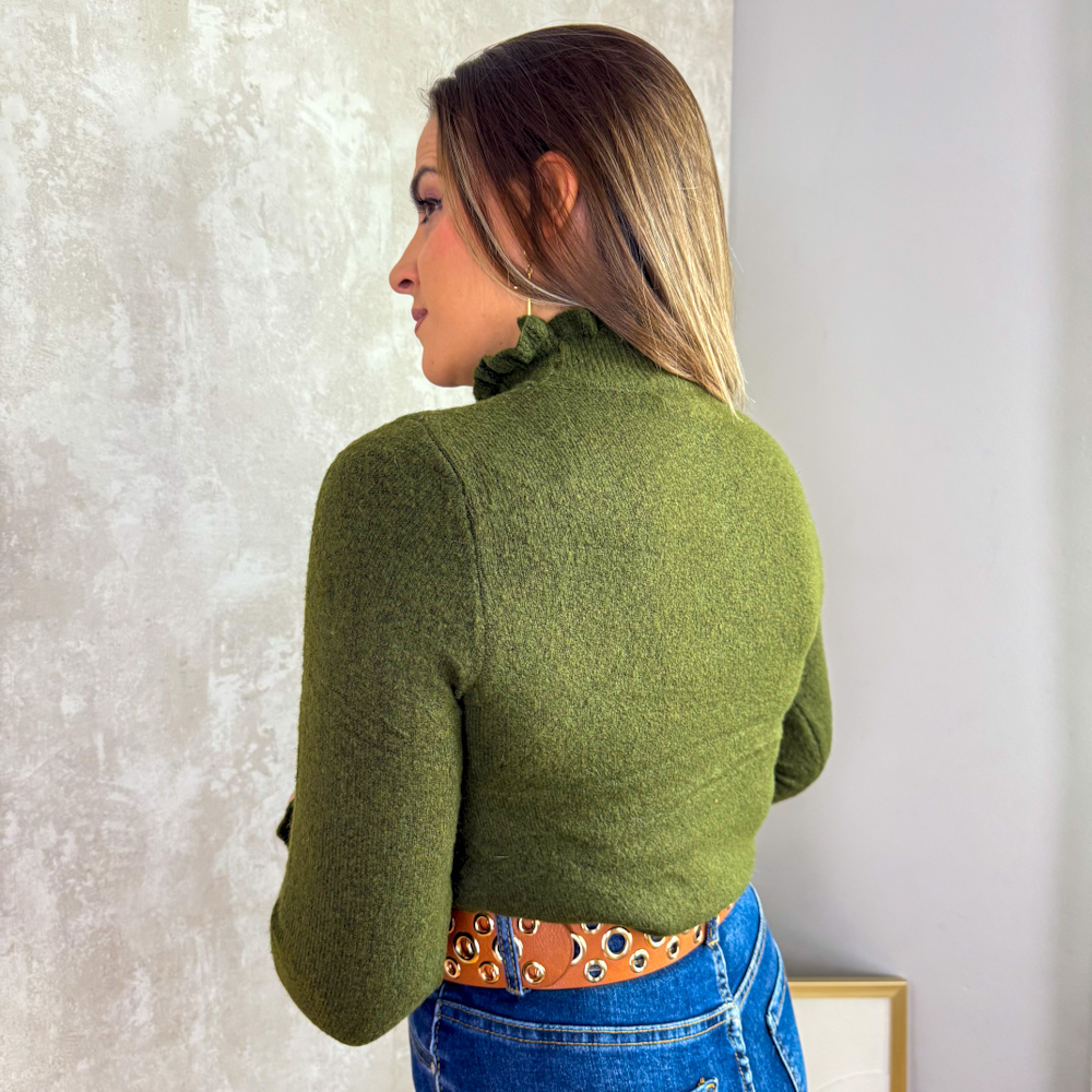 Jersey con volante en cuello y mangas