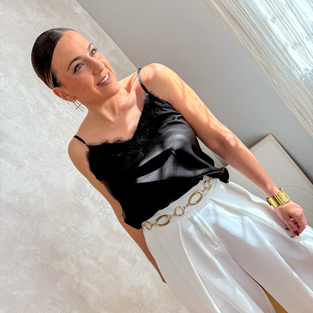 Lencero satinado en color negro con las tirantas regulables.