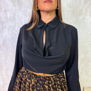 Blusa satinada con escote en forma de gota.