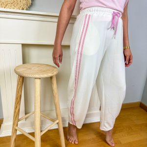 Pantalón chandal blanco y rosa palo
